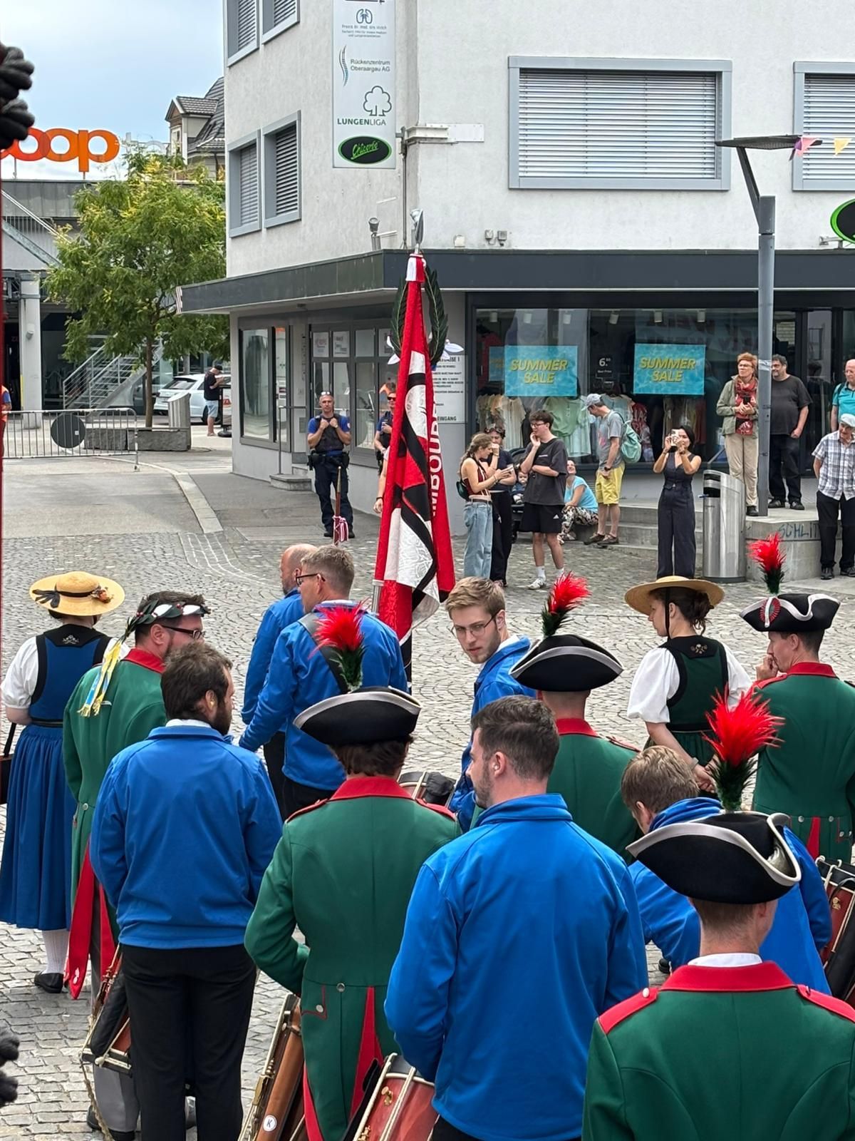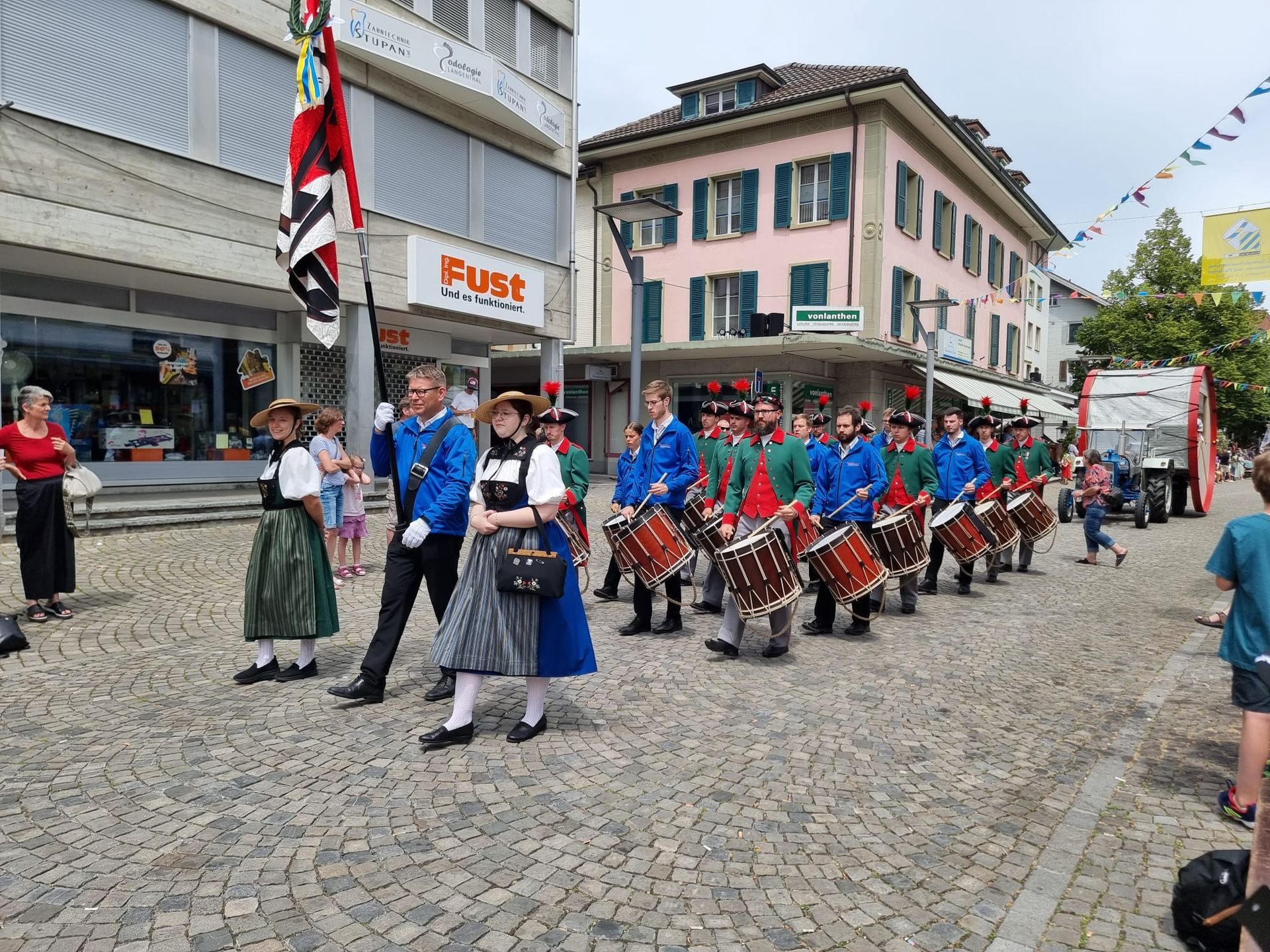 Am 6. Juli 2025 durften wir als Ehrendamen und zusammen mit der Kindertanzgruppe Rothrist am Umzug des diesjährigen Tambourenfest in Langenthal teilnehmen.